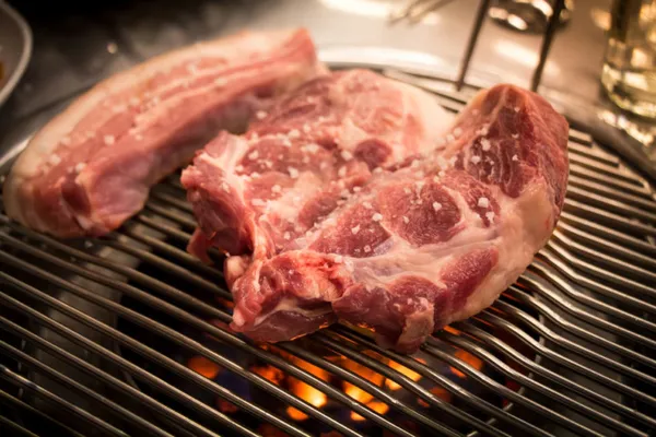 The layers of fat on the cut of meat melt almost instantly when they hit the grill, while the actual meat itself remains firm and soaks up the juicy flavors of the fat and slowly but surely evolves into a piece of pork with a thin crispy layer on the outside with an amazing hidden flavor that is sure to delight you on the inside. The texture is hard to explain as you first bite in as the fattiness makes for a bouncy yet tender texture that melts in your mouth as you eat it.