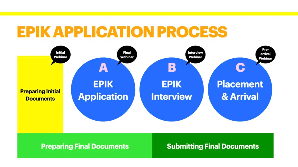 If you have uncertainty on how to fill out your EPIK Online Application form, how to prepare for your interview, and importantly, which documents to prepare, don’t worry. We got you covered. We have webinars for just about everything related to EPIK. Want to make sure your application form is filled out correctly? We got you covered! What about interview questions? We got you covered! Not sure about what documents you need to send over? We got you covered!