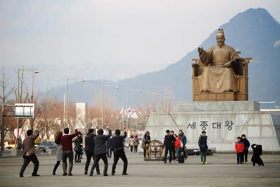 Paying tribute to Sejong the Great with a rendition of Gangnam Style…in Gwanghwamun.