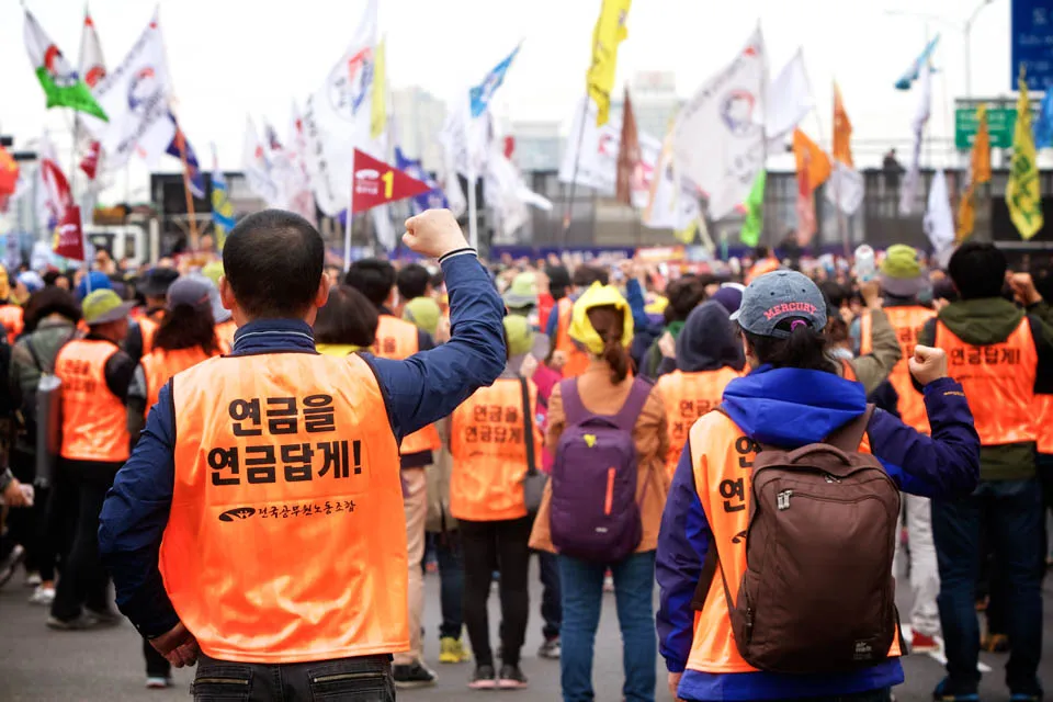 Protesting unions are a part of life on Saturdays in Seoul. Raise your fist and join!
