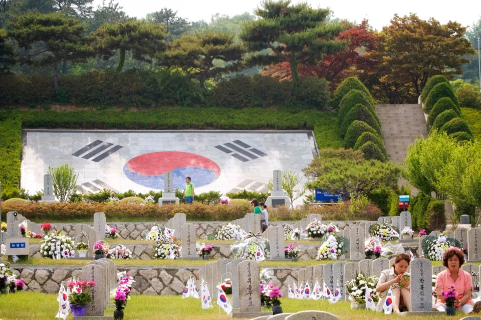 Families pay respect to their lost ones at the Seoul National Cemetery right outside Dongjak Station (동작역).