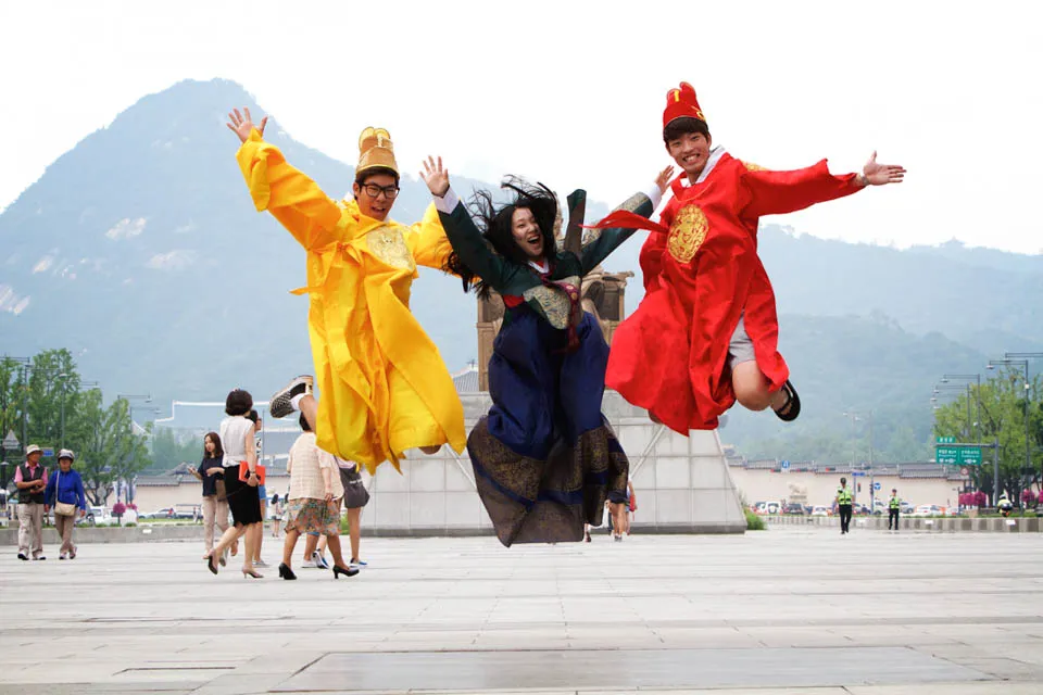 If you’ve never worn a Korean traditional outfit, try one out at Gwanghwamun Plaza.