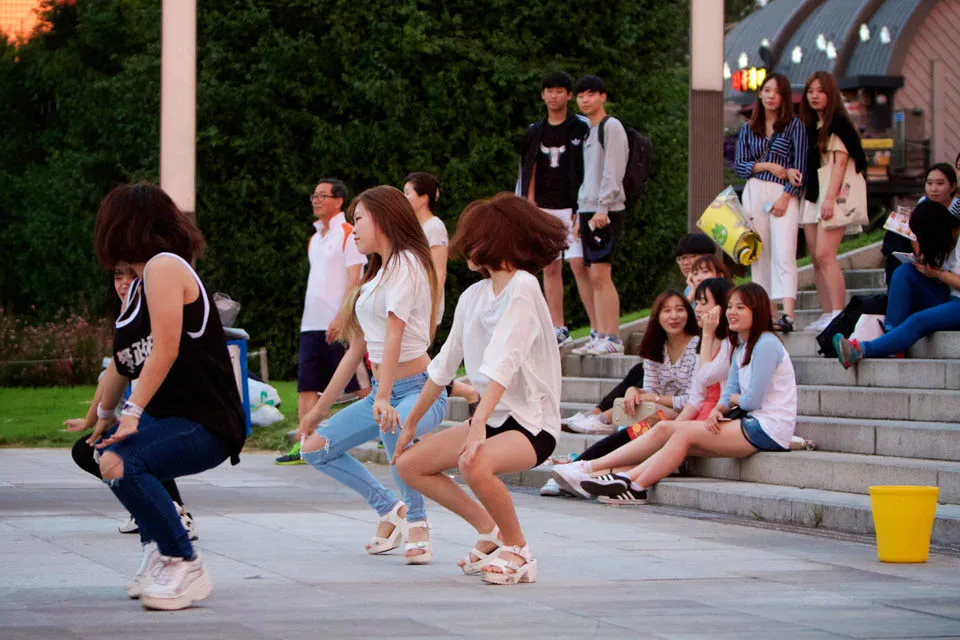 EXID wannabes show off their stuff for crowds at Yeouido Han River Park.