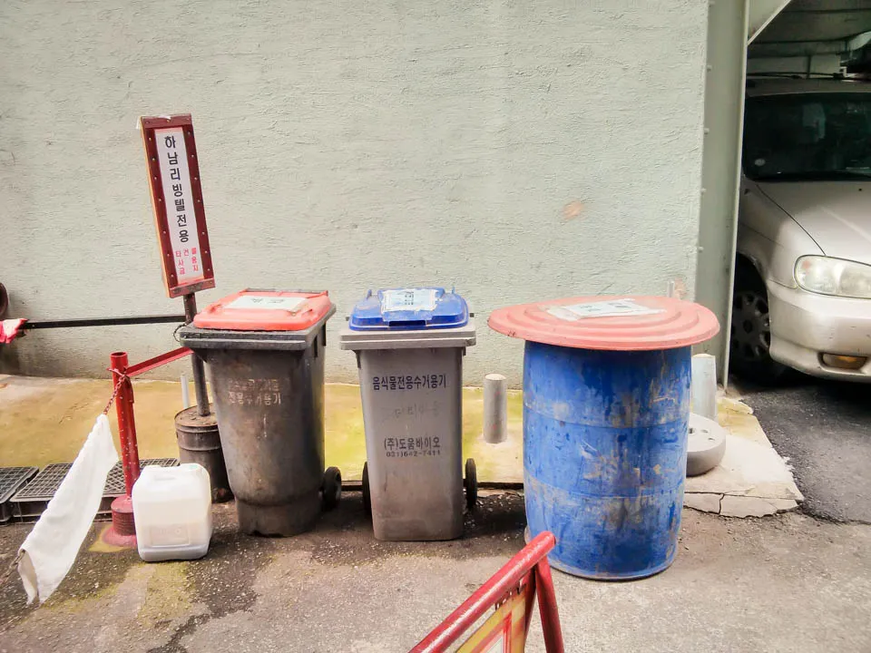 Korea’s waste system is different from that of many of the Western countries we come from. It can be confusing and smelly, but you should stick to it. Not because of the fines–it’s unlikely you or anyone you know will get one. You should do it because you’re a guest in this country, being provided with an awesome experience and free rent.