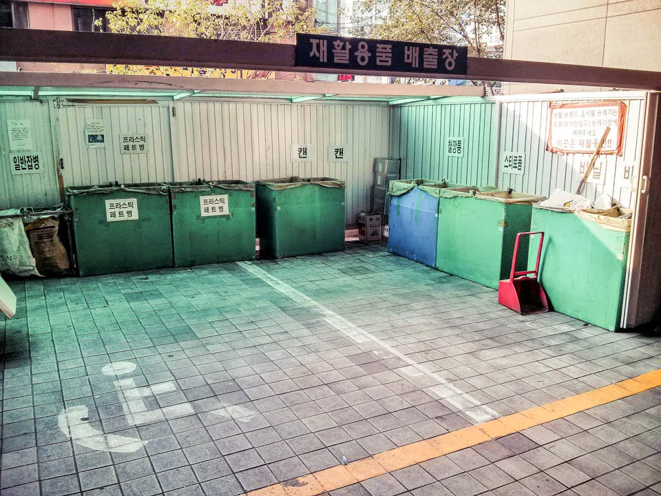 After you’ve got all your garbage in the correct bag, you can’t just throw it into some massive dumpster. Dumpsters hardly exist in Korea. Instead, there is always a designated place outside the building to leave your nice little bag of garbage. Again, check with your landlord or co-teacher.