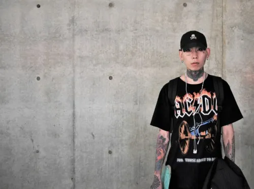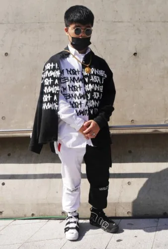 15. A fashionisto sporting the Korean brand “I AM NOT A HUMAN BEING.”
